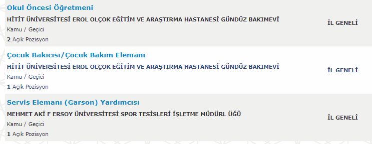 İŞKUR üzerinden yayımlanan kamu ilanlarına baktığımızda ise üniversitelerin ilanları şu şekilde yer aldı: