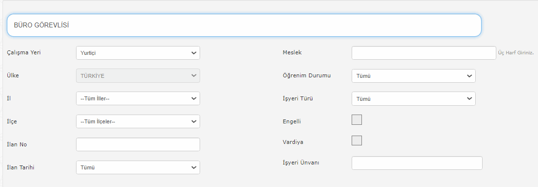 Yukarıdaki gibi aradığınız pozisyon yazan kısmına , başvuru yapmak istediğiniz kadroyu yazın ve ARA butonuna tıklayın. İlanlar aşağıda sıralanacaktır. Kadın erkek memurlar bu sayfada >>> TIKLA İNDİR