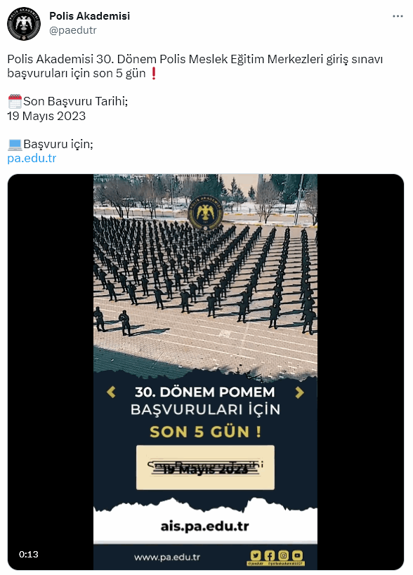 Başvurular ais.pa.edu.tr adresi üzerinden yapılacak. Başvurular 19 Mayıs tarihine kadar alınacak. Polis Akademisi yayınladığı duyurusunda şu ifadeleri kullandı: "
