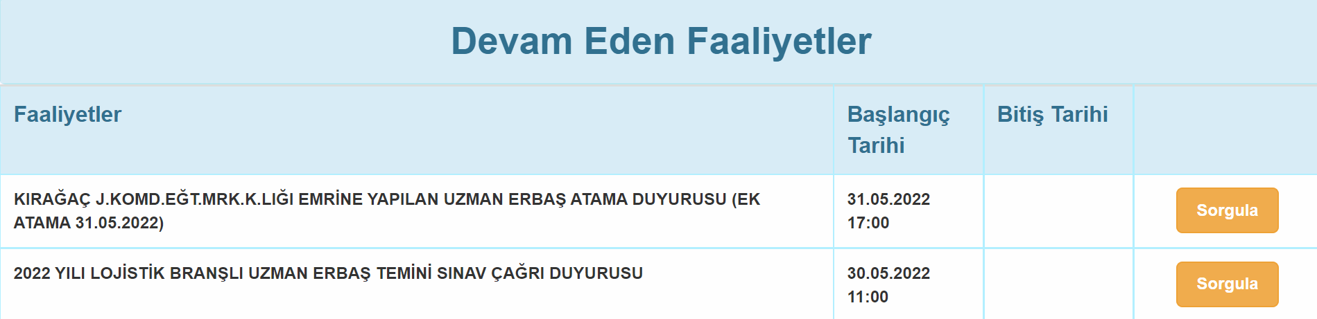 Adaylar Jandarma uzman erbaş atamaları için sonuçlarını e-Devlet şifiresi ile aşağıdaki adrese kullanarak sorgulama yapabilirler.