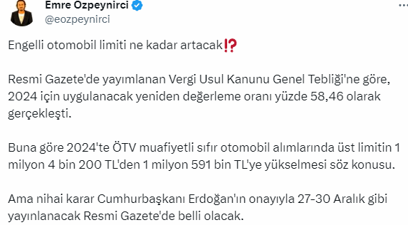 Ama nihai karar Cumhurbaşkanı Erdoğan'ın onayıyla 27-30 Aralık gibi yayınlanacak Resmi Gazete'de belli olacak"