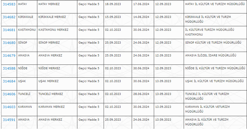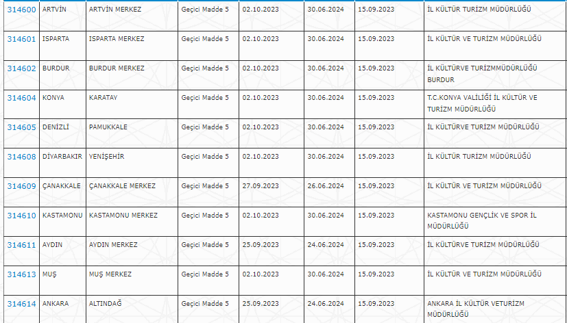 TYP kapsamında yapılan personel alımında adaylar aşağıdaki illerde çalıştırılacak: