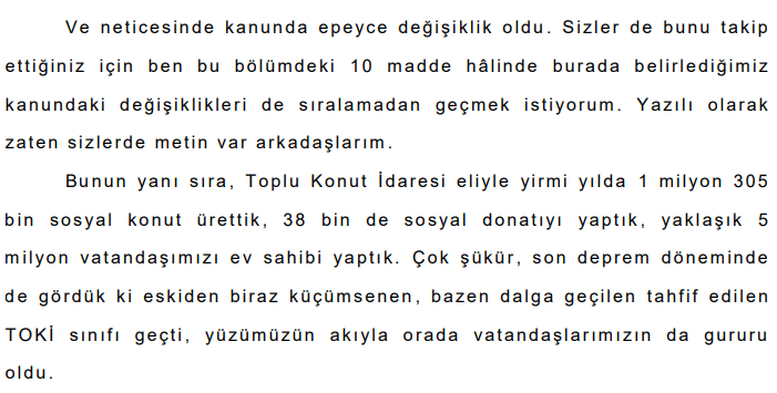 TOKİ'nin son depremde iyi bir sınav verdiğini söyleyen Bakan, şunları söyledi: