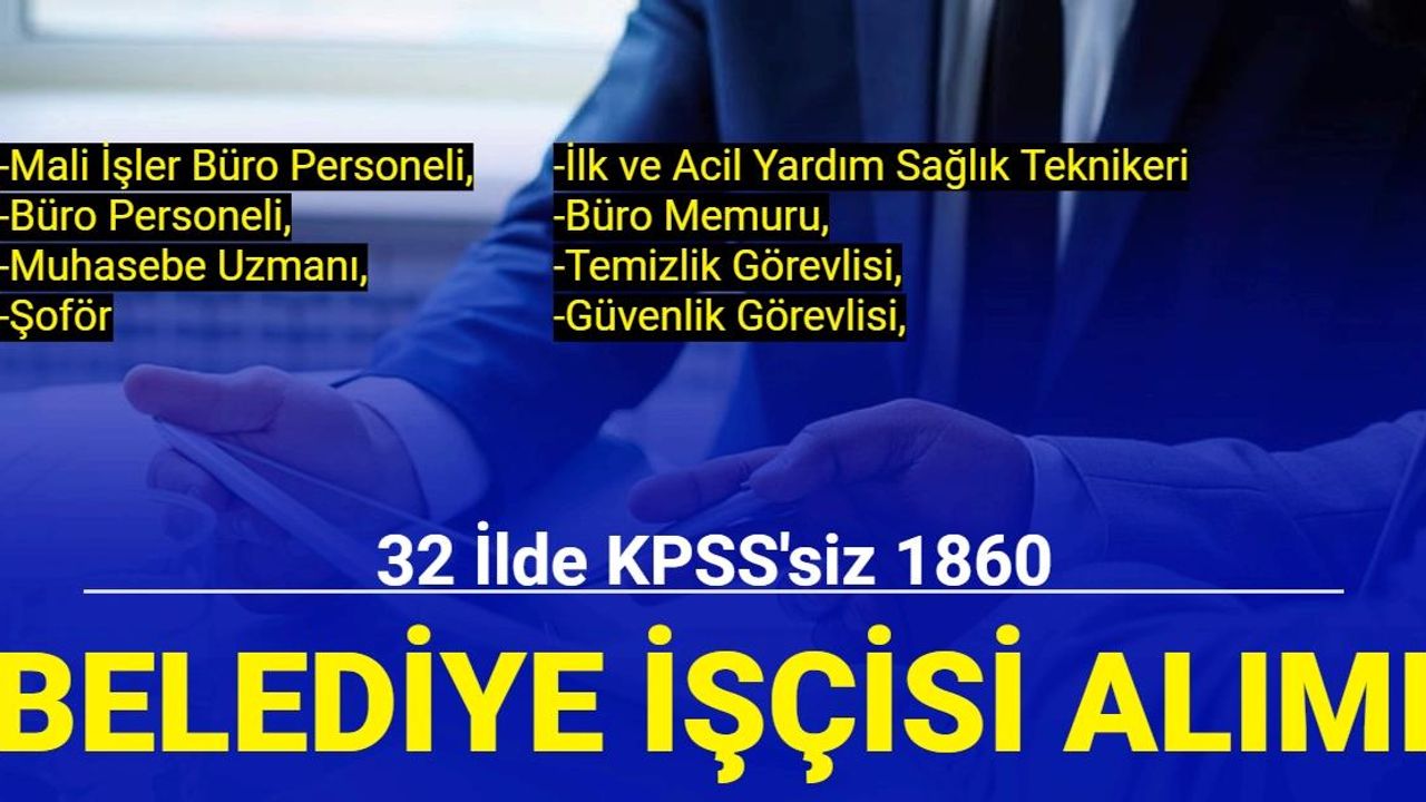 KPSS şartı olmadan belediye ve şirketlerine beden işçisi, büro personeli, temizlik personeli, güvenlik görevlisi, şoför, tekniker, teknisyen ve daha birçok kadroya alım yapılıyor.