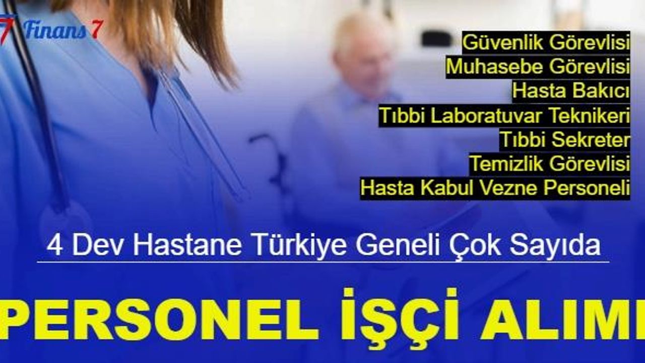 Türkiye genelinde birçok ilde merkezi bulunan 4 büyük hastane tarafından peş peşe açıklamalar yapıldı ve en az ilkokul mezunu adaylar arasından personel ve işçi alımı yapılacağı duyuruldu. Özel hastaneler bünyesine yapılmakta olan personel alımlarının başvuru bilgileri ve detayları finans7.com'da.