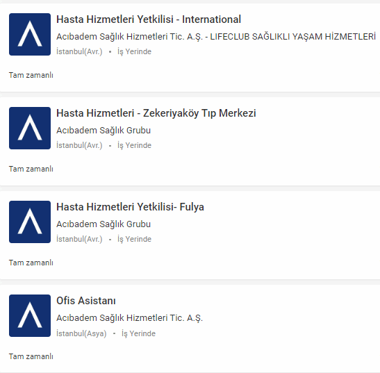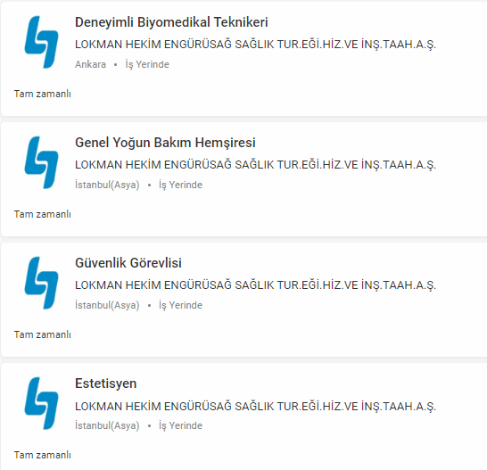 Bir kariyer sayfası üzerinden yayımlanan personel alımı ilanlarına baktığımızda farklı pozisyonlara çok sayıda personel alındığı görüldü. İlanlarda Acıbadem Hastanesi, Dünya Göz Hastanesi, Lokman Hekim Hastanesi ve Medipol Hastanesi bünyesine en az ilkokul mezunlarından, hasta danışmanı, güvenlik görevlisi, sekreter, temizlik personeli, hasta karşılama görevlisi, yardımcı personel, sağlık personeli, muhasebeci ve diğer kadrolara alım yapıldığı görüldü.