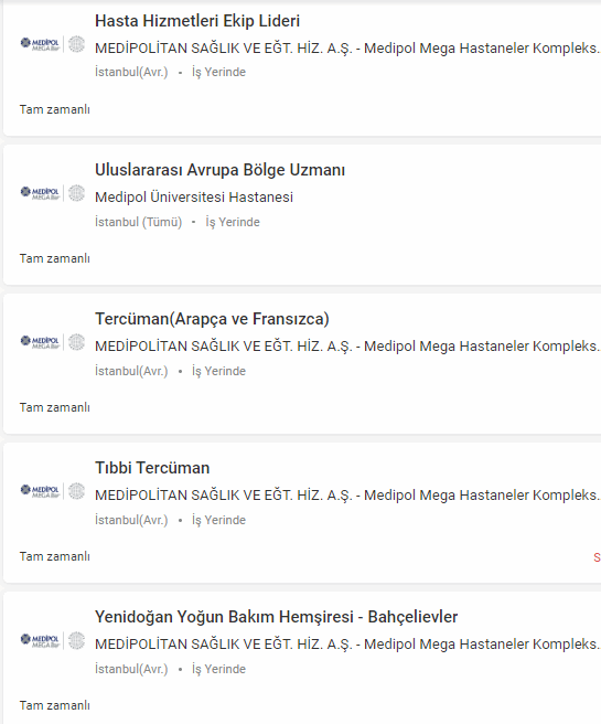 -Medipol Hastanesi personel alımı ilanları için başvuru sayfası: