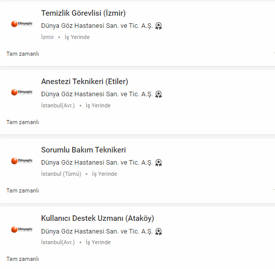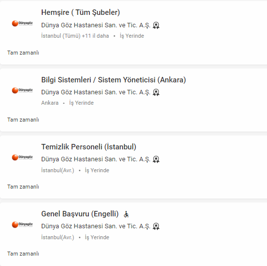 -Dünya Göz Hastanesi personel alımı başvuru sayfası: