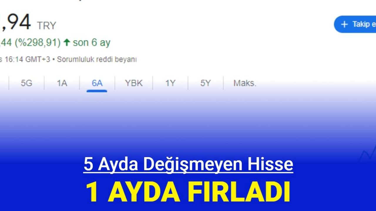 2023 yılında 4.2 TL seviyesinde olan, son 5 ayda hemen hemen hiç değişmeyen hisse, 1 ay içinde ciddi şekilde yükselerek tavan tavan gidip yüzde 250'ye yakın değer kazandı.