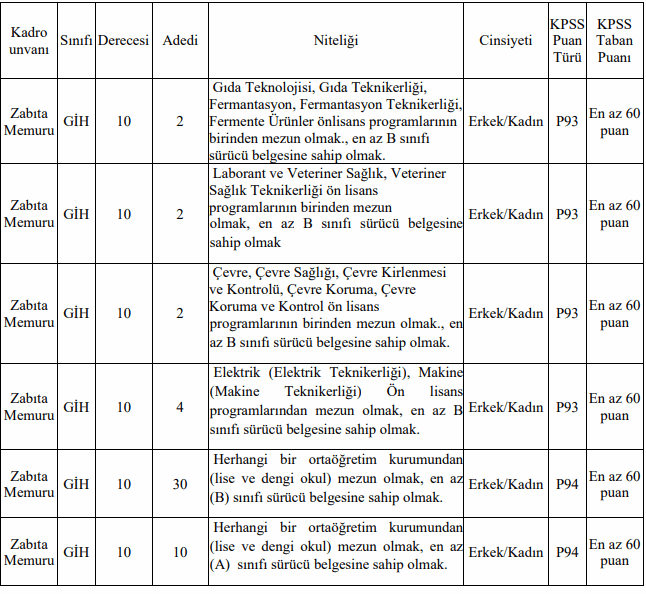 Başvuru formu yayınlandı ve zabıta memuru, itfaiye eri ve tahsildar alımı başvuruları alınmaya başladı.