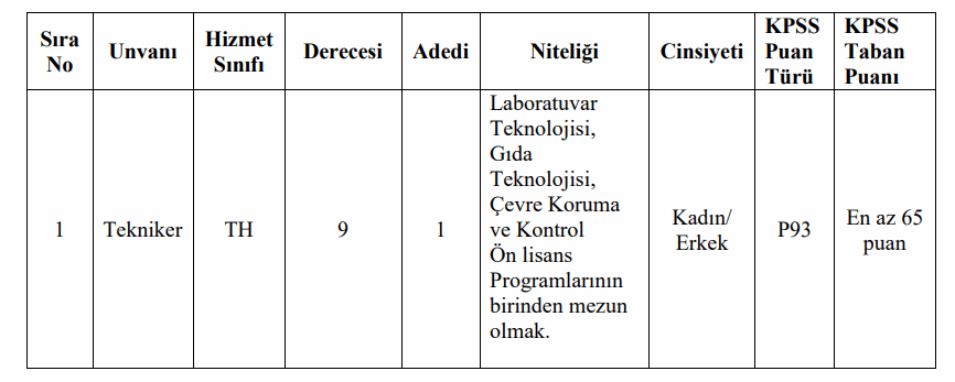 • İlan edilen unvan için mezun olunan okul itibari ile öğrenim şartını taşımak ve bu öğrenimle ilgili olarak 2022 yılı Kamu Personeli Seçme Sınavından (KPSS) alım yapılacak unvanların karşısında belirtilen puan türlerinden, belirtilen asgari KPSS puanını almış olmak.