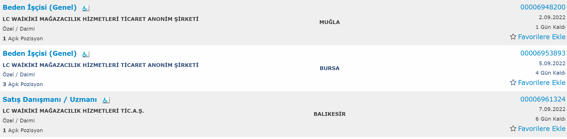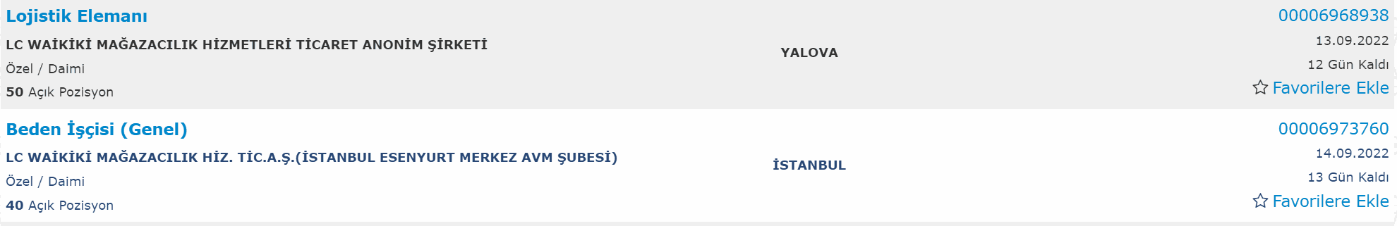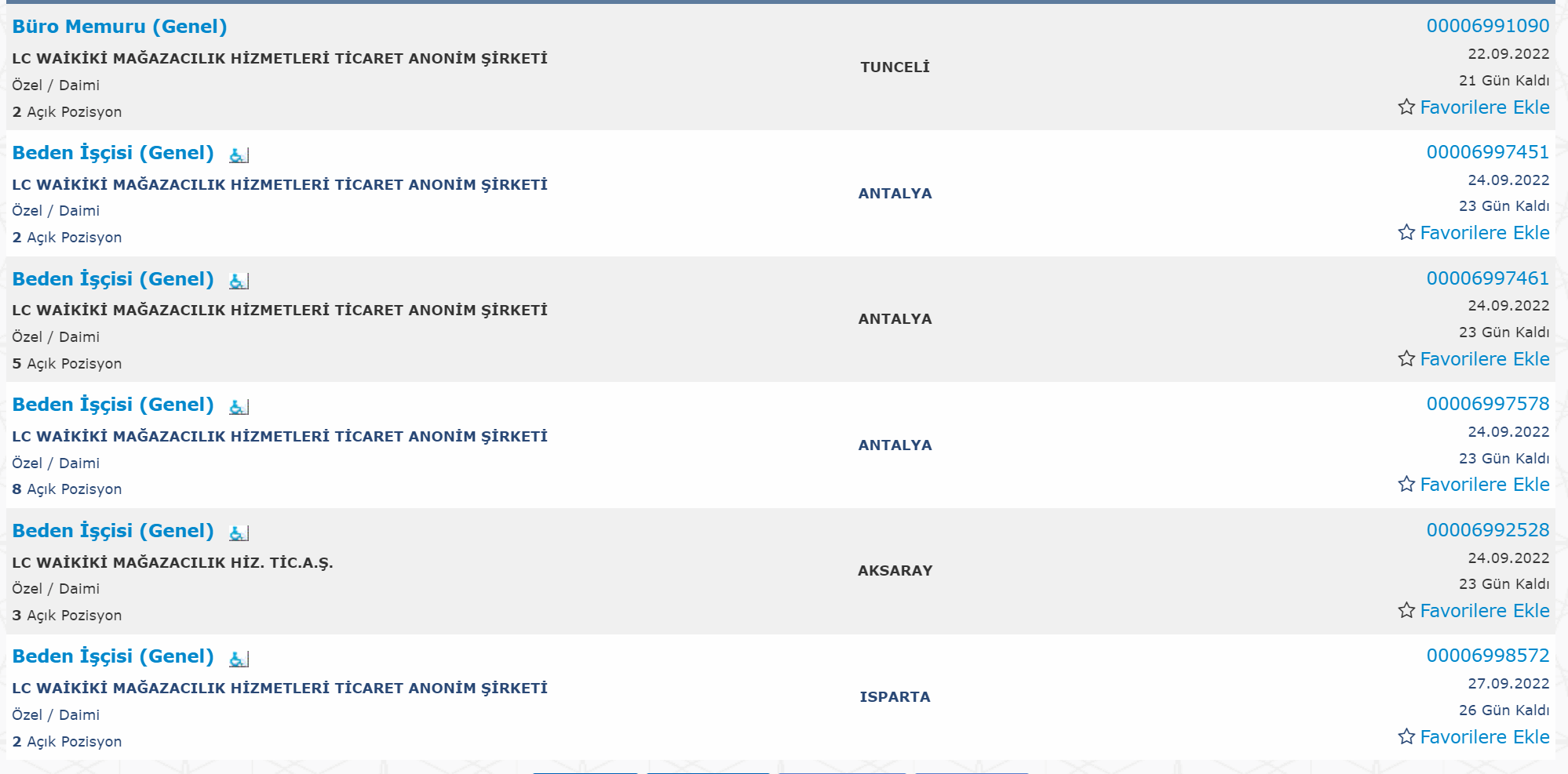 İşkur üzerinden yayımlanan ilanlar şu şekilde;