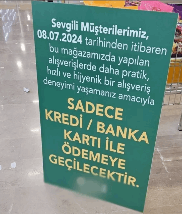 Bir zincir market tarafından yapılan son dakika açıklamasında 8 Temmuz tarihinden itibaren artık sadece kredi ve banka kartı ile ödeme yapılacağına yer verildi.