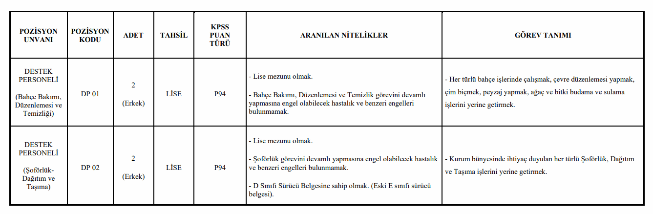 5. Aşağıdaki tabloda Destek Personeli (Şoförlük-Dağıtım ve Taşıma) pozisyonuna ilişkin aranılan nitelikler bölümünde istenilen sürücü belgesi,