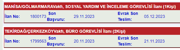 Yukarıda verilen personel alımı ilanlarının başvurusuna ilişkin detaylara internet üzerinden ulaşabileceksiniz. "https://vakifilan.aile.gov.tr/" adresi üzerinden Aile Bakanlığı'nın SYDV personel alımı sistemine giriş yapabilir ve başvurularınızı bu adresten yapabilirsiniz.