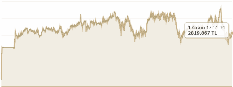 Gelen son dakika bilgilerine göre gram altın 2800 TL'den 2819 TL'ye kadar yükseldi.