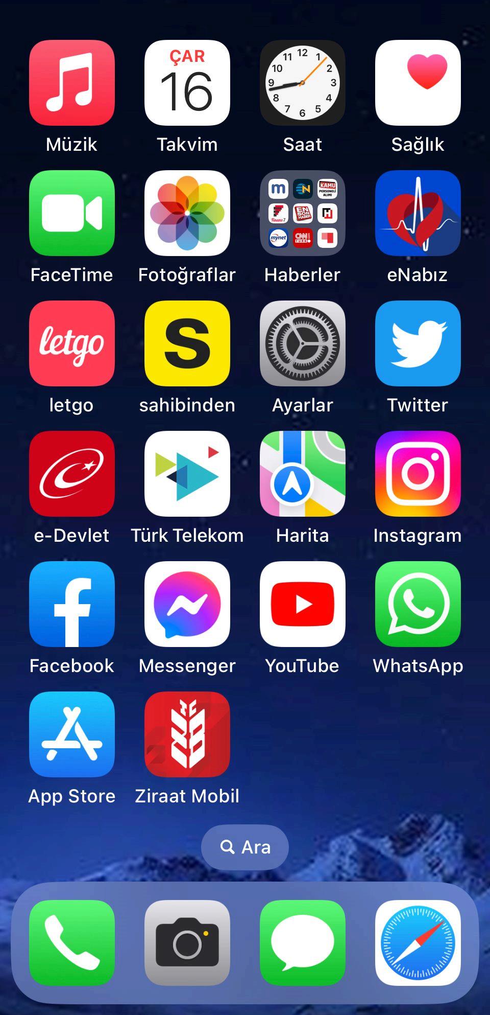 Bir diğer değişikliğe baktığımızda ekran kilidini açtığımızda karşımıza çıkan menünün altında ARA yeri gelmiş. İşte o görüntü: