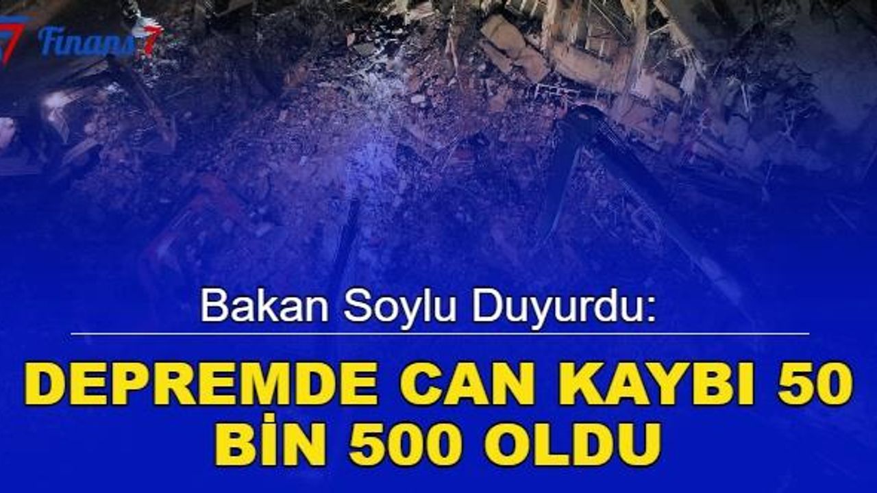 6 Şubat'ta Kahramanmaraş'ta meydana gelen ve 11 ilde ciddi yıkımlara neden olan depremlerin ardından can kaybı açıklandı. Konuya ilişkin açıklamalarda bulunan İçişleri Bakanı Süleyman Soylu Kahramanmaraş merkezli depremlerde 50 bin 500 kişinin hayatını kaybettiğini açıkladı.