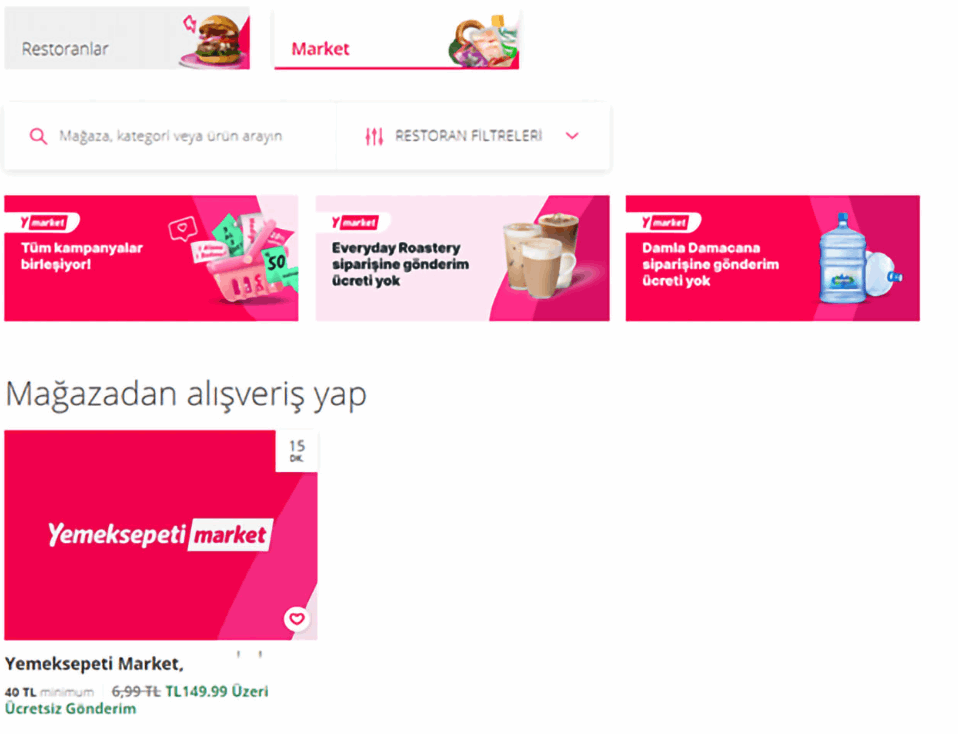 Yemek Sepeti Market'in logosu ile görünümü ise şu şekilde: