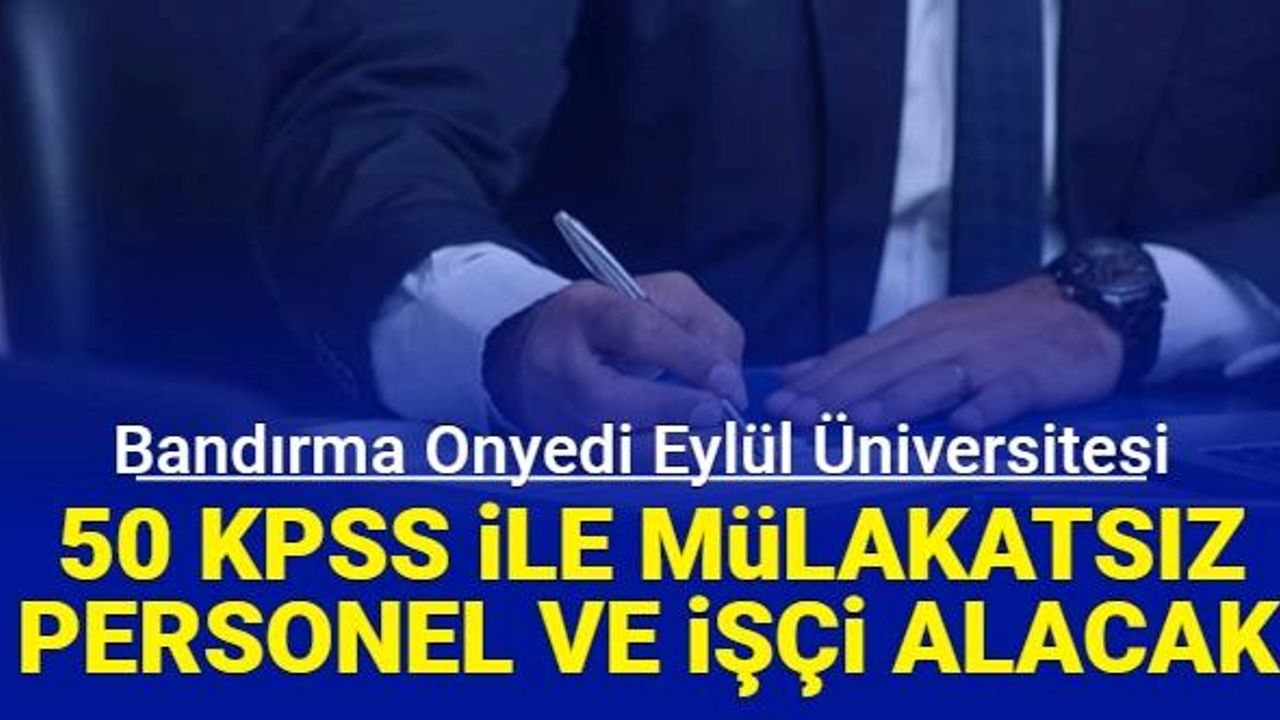 Bandırma Onyedi Eylül Üniversitesi tarafından yayınlanan son dakika açıklamasında sözleşmeli personel alımı yapılacağına yer verildi. KPSS 50 puan şartı ile yapılacak personel alımında başvurular başladı. Biz de finans7 olarak bu yazımızda ilanın bilgilerine yer verdik.