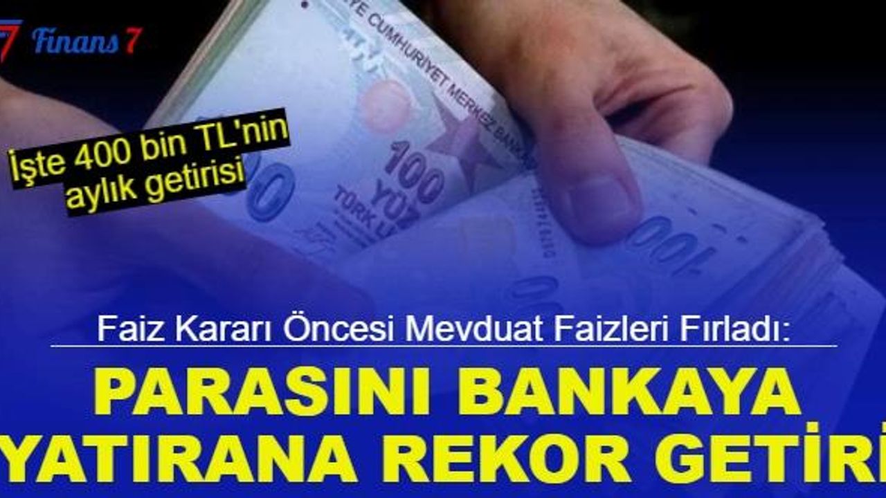 Bankaların açıkladığı mevduat faizine baktığımızda 400 bin TL'nin aylık getiriler şu şekilde: