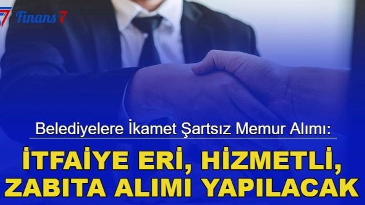 Birçok ilde bulunan il ve ilçe belediyeler bünyesine KPSS puanı ile zabıta memuru, itfiaye eri ve hizmetli alımı yapılacağı açıklandı. İkamet şartı aranmadan yapılacak belediye memuru alımında başvuru detayları finans7.com'da.