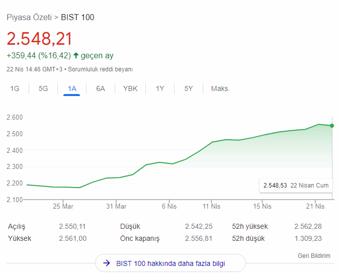Borsa İstanbul 100 endeksinde bugün sabah saatlerinde yükseliş başlamıştı. 2560 seviyesine çıkarak tüm zamanların en yüksek seviyesine kadar gelen Bist 100 endeksi, haftalar sonra ilk defa düşüş eğilimine geçti. Şu sıralar ekside olan Bist 100'de ciddi bir düşüş görülmedi. Son rakamlara baktığımızda Bist 100 endeksinde yüzde 0.28'lik düşüş yaşandı ve 2 bin 549 seviyesinde seyir devam ediyor.