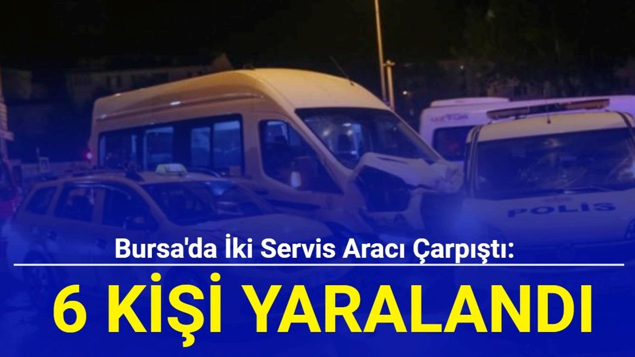 Edinilen bilgiye göre, Bursa'da Organize Sanayi Bölgesi'nde Dinçer U. (52) idaresindeki 16 S 8030 plakalı servis midibüsü, Yaşar S. idaresindeki 16 S 6074 plakalı servis midibüsü ile çarpıştı. Kazada, araçlarda bulunan Rümeysa T. (26), Faruk E. (23), Naime K. (43), Yunus T. (22), Emine K. (40) ve Ayşe A. (43) yaralandı.
