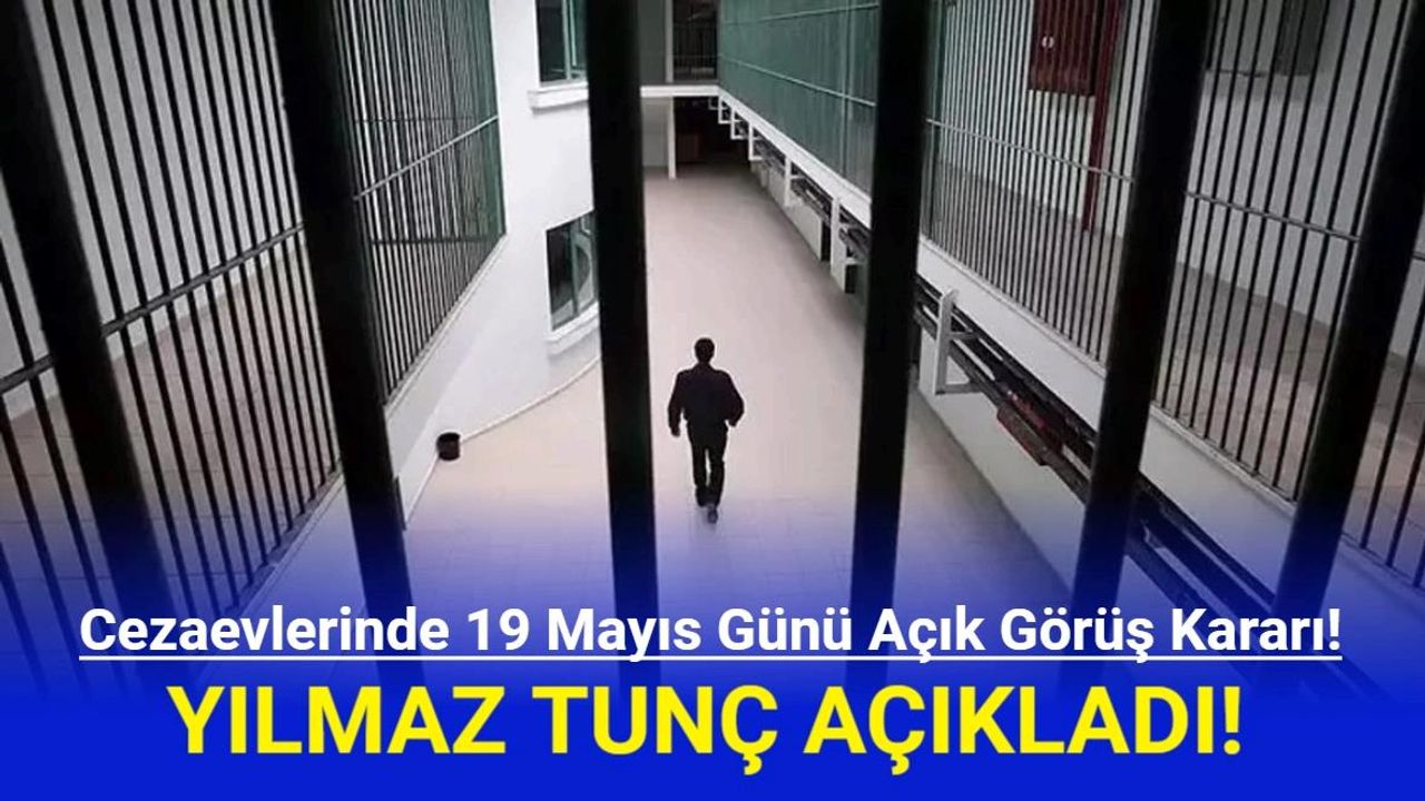 Adalet Bakanı Yılmaz Tunç, 19 Mayıs Atatürk'ü Anma, Gençlik ve Spor Bayramı dolayısıyla ceza infaz kurumlarında bulunan hükümlü ve tutuklulara açık görüş imkanı tanınacağını duyurdu.