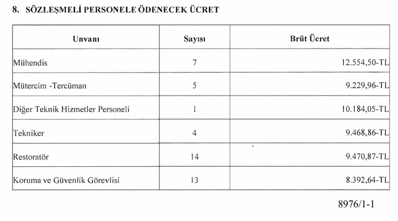 Alınacak personellerin kadro dağılımı ve personellere verilecek maaşlar şu şekilde:
