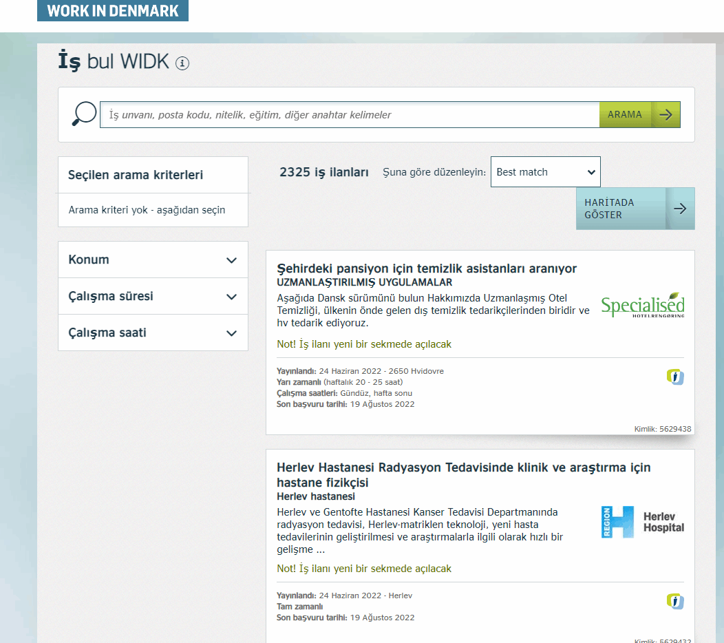 Daha sonra karşınıza aşağıdaki iş ilanı listesei çıkacak: