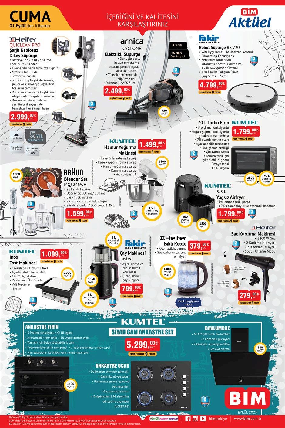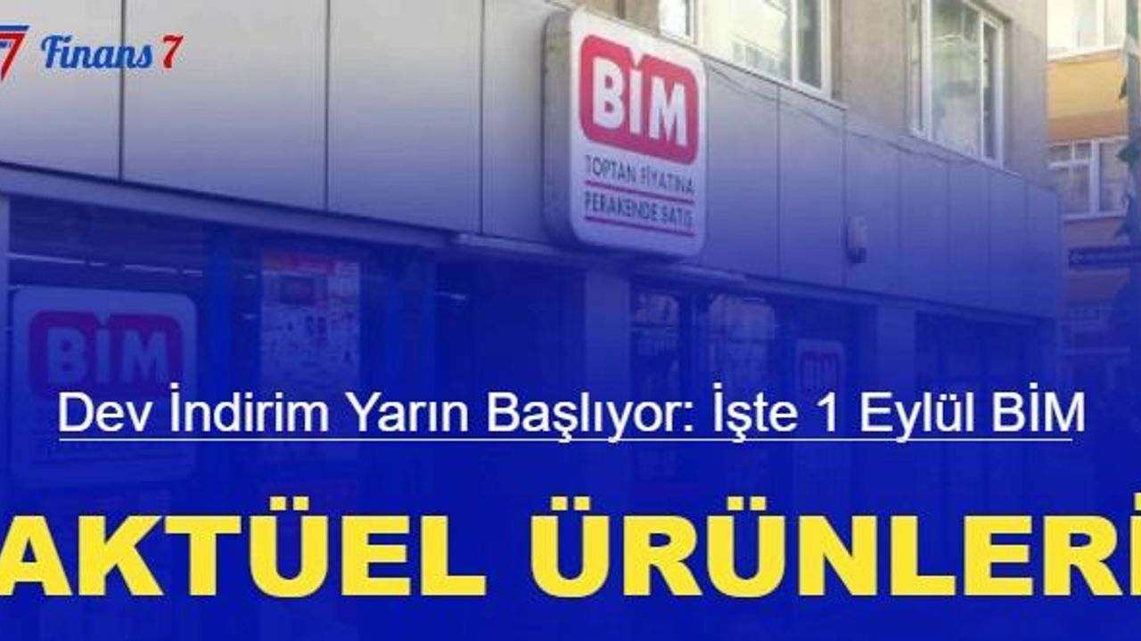 BİM resmi internet adresi üzerinden bir son dakika açıklaması yapıldı ve yarın market raflarında yer alacak indirimli ürünler listesine yer verildi. Yayımlanan kataloğa baktığımızda Elektronik eşyadan küçük ev aletlerine pek çok üründe dev indirimlerin yapıldığı görüldü. Peki 1 Eylül cuma günü BİM'e neler gelecek? İşte indirimli ürünler listesi.