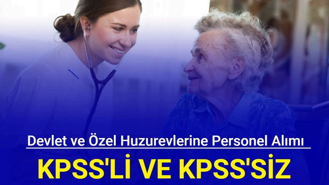 Devlet ve özel huzurevleri bünyesine yapılan alımlarda kadrolar şu şekilde: