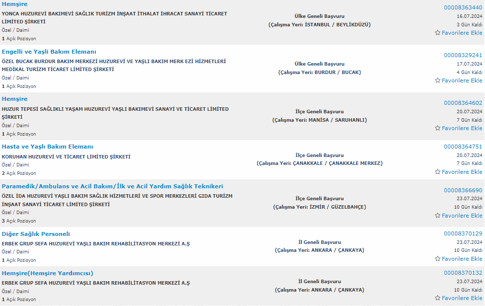 ÖZEL HUZUREVLERİNE PERSONEL ALIMI