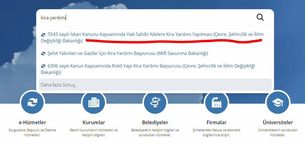Öncelikle e devlet kapısı üzerinden yukarıdaki gibi Kira Yardımı yazan yere gidin. Kira yardımı yazan yere gittikten sonra 5543 sayılı iskan kanunu kapsamında hak sahibi ailelere kira yardımı yapılması kısmına tıklayın. Daha sonra karşınıza çıkan ekranda UYGULAMAYA GİT linkine tıklayın.
