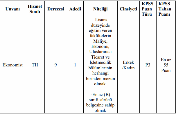 55 KPSS ile ekonomist kadrosuna yapılacak alımda başvuru genel şartları şu şekilde: