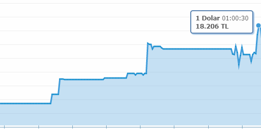 Dolar kuru yeni haftanın ilk işlem gününe rekorla başladı. Edinilen son dakika bilgilerine göre geçen haftayı 18.13 TL seviyesindne kapatan dolar kuru , asya piyasalarının işleme başlamasından sonra kısa sürede hızlıca yükseldi ve 18.30 TL'yi görerek 2022 yılının rekorunu kırdı.