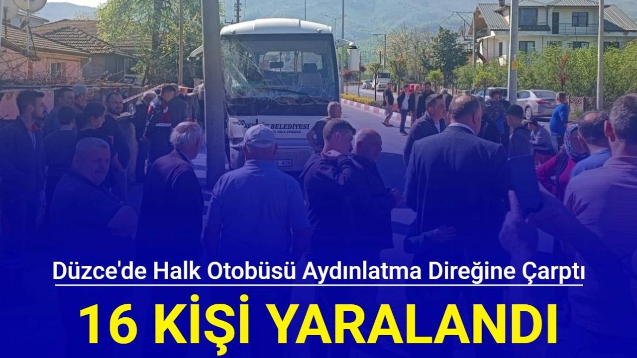 Düzce'nin Beyköy beldesinden bir son dakika haberi geldi. Halk otobüsünün aydınlatma direğine çarpması sonucu 16 kişi yaralandı.