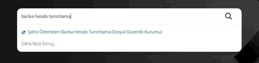 Banka hesabı tanımlama işlemi e devlet üzerinden yapılıyor. E Devlet kapısına gittiğinizde arama kısmına aşağıdaki gibi banka hesabı tanımlama yazın ve çıkan sonuca tıklayın.