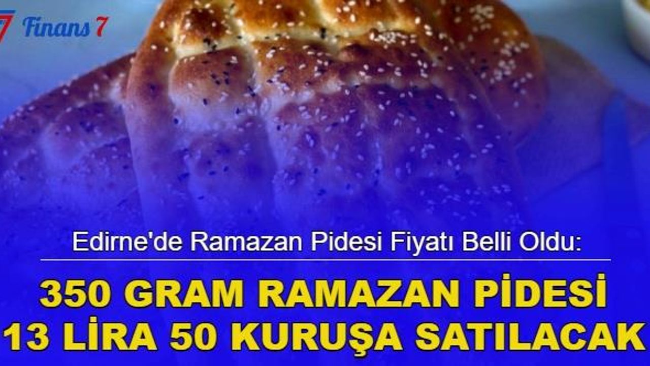 Ramazan ayına sayılı günler kala illerdeki pide fiyatları tek tek açıklanmaya başladı. Edirne Ticaret ve Sanayi Odası (ETSO) ve Edirne Esnaf ve Sanatkar Odaları Birliği'ne (EDESOB) kayıtlı fırıncıların pide satış fiyatı talepleri, odaların yönetimince değerlendirilerek karara bağlandı. Buna göre, 350 gram Ramazan pidesi 13 lira 50 kuruştan satılacak.