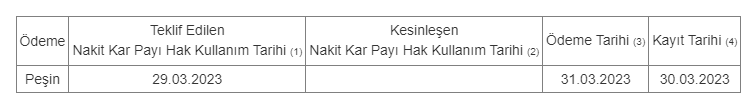 (2) Kar payının şirket tarafından ödeneceği ve payın kar payı hakkı bulunmadan işlem görmeye başlayacağı tarih (kesinleşen).