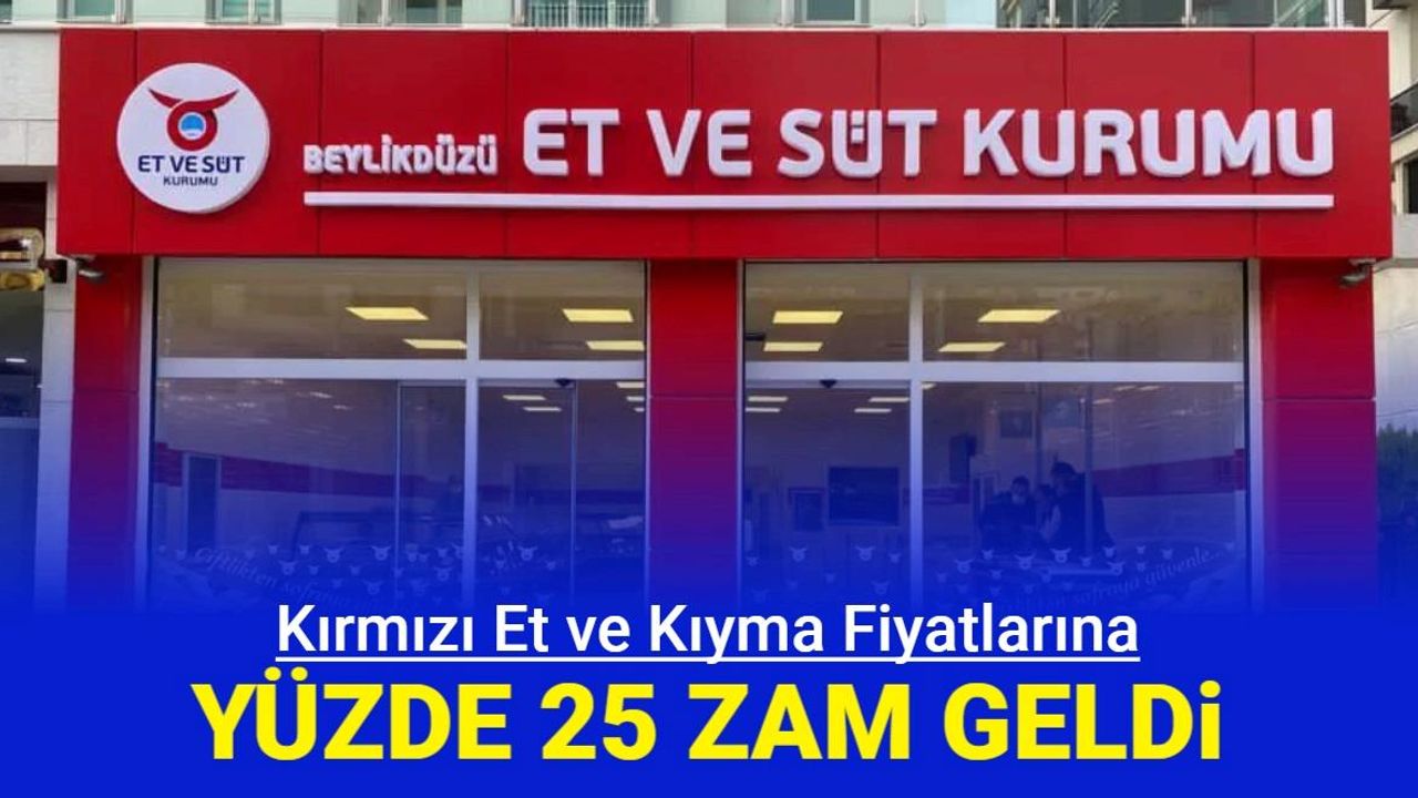 Et ve Süt Kurumu'ndan gelen son dakika bilgilerine göre kıyma ve kuşbaşı et fiyatına yüzde 25 zam geldi.