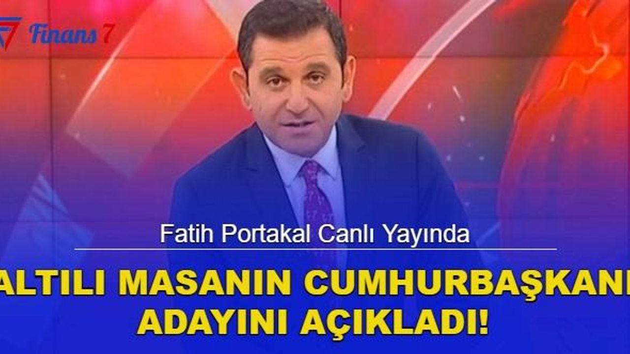 Gazeteci Fatih Portakal, YouTube kanalı üzerinden yaptığı yayında CHP, İYİ Parti, Saadet Partisi, Demokrat Parti, Gelecek Partisi ve DEVA Partisi'nin oluşturduğu Altılı Masa'nın cumhurbaşkanı adayıyla ilgili açıklamalarda bulundu.