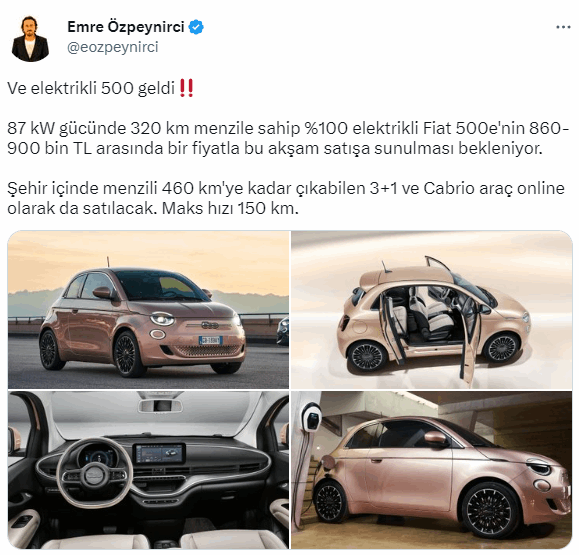 Emre Özpeynirci konu ile ilgili yaptığı son dakika açıklamasında, "Ve elektrikli 500 geldi" başlığını attı ve şu ifadeleri kullandı: