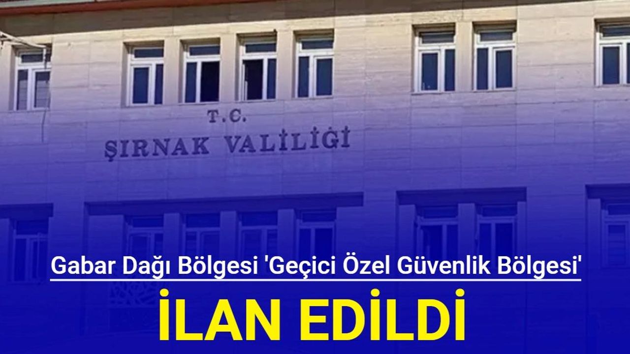 Şırnak Valiliği tarafından bir son dakika açıklaması yapıldı ve Gabar Dağı bölgesinin, 26 Mart-9 Nisan tarihleri arasında 'Geçici Özel Güvenlik Bölgesi' ilan edildiği duyuruldu.