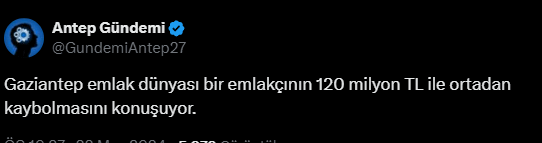 "Gaziantep emlak dünyası bir emlakçının 120 milyon TL ile ortadan kaybolmasını konuşuyor"