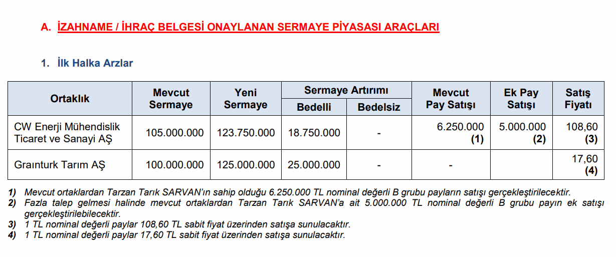 Sermaye Piyasası Kurulu tarafından bir açıklama yapıldı. Yayınlanan haftalık bültene baktığımızda Graınturk Tarım AŞ'nin halka arzının onaylandığına yer verildiği görüldü. Halka arz edilen 2 şirketten biri olan Graınturk Tarım'ın bu halka arzına dair detaylara yer verildiği görüldü.