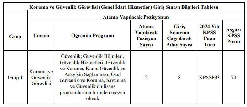 Koruma ve Güvenlik Görevlisi pozisyonu için;
