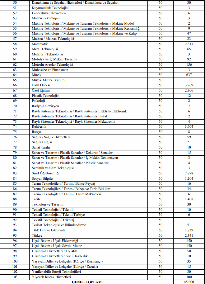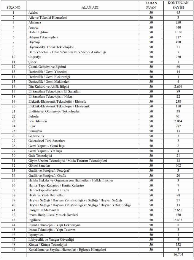 MEB tarafındna yayınlanan sözleşmeli öğretmen alımında branş dağılımına şu şekilde yer verildi: