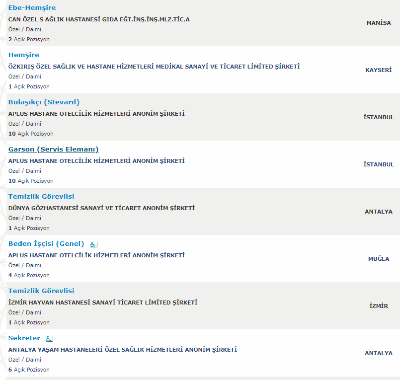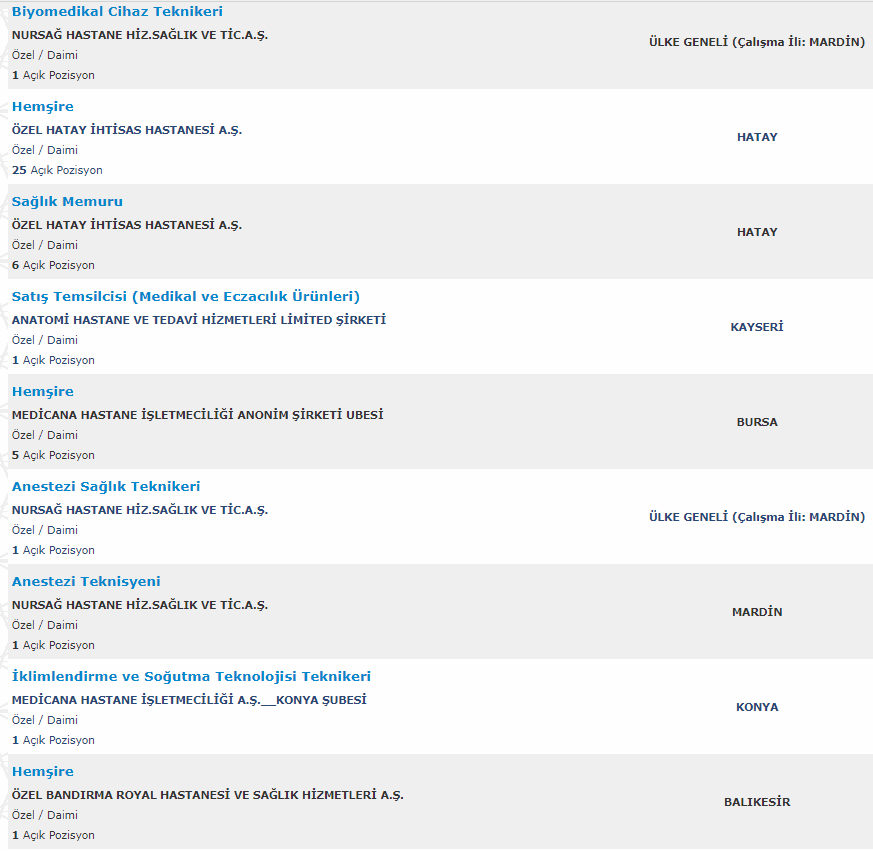 Kariyer üzerinden yayımlanan 1361 ilan ile çok sayıda personel alınırken İŞKUR ve üniversite hastaneleri ilanlarının da eklenmesi ile 1800 civarında personel alımı yapılıyor. İlanlara nasıl başvuru yapılacağı yukarıda anlatılmıştır. Kariyer ve İŞKUR ilanları özel hastanelere yapılan personel alımlarıdır. Diğerleri ise kamuya yapılıyor.